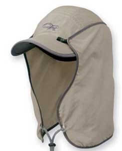 A hat that does everything well! The Outdoor Research Sun Runner Cap is convertible between a lightweight running hat and a more serious expedition hat by allowing a neck shade to be attached to the hat. The neck shade can block sun and protect from bugs. It comes in light colors to better deal with solar radiation, but other colors are available if you don't like the bright white. This is one of the most functional hats I've ever put on my head. And it works great to control the brim on your rain jacket.